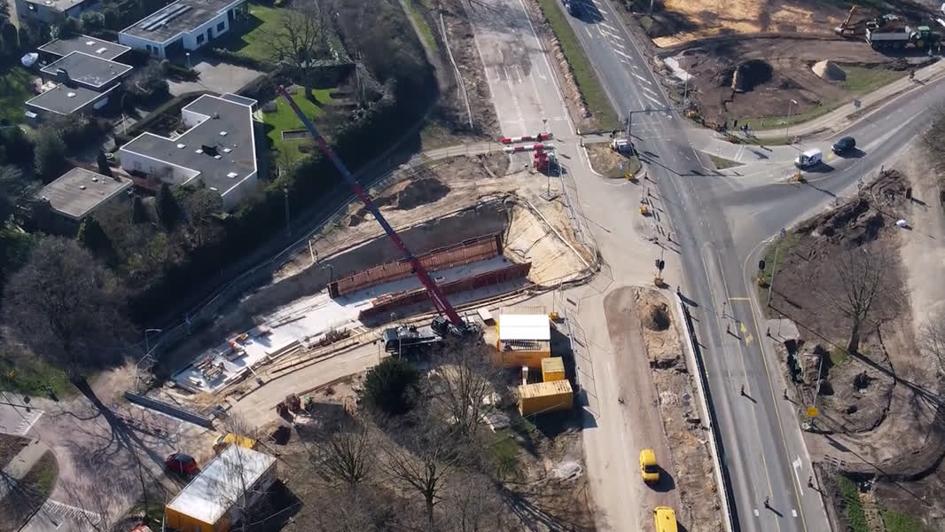 Tijdens de afsluiting van de N18 kan iedereen de bouw van de tunnel van dichtbij bekijken. Aannemer Heijmans plaatst daarvoor een kleine tribune naast de bouwlocatie aan de Zieuwentseweg in Lichtenvoorde.