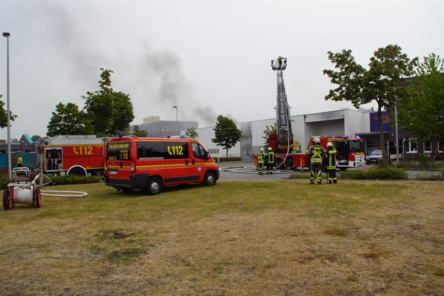 In de grensplaats Bocholt is donderdag een grote brand uitgebroken in een bedrijfspand. Ook de Nederlandse brandweer kwam ter plaatse om te assisteren bij de bestrijding van het vuur.