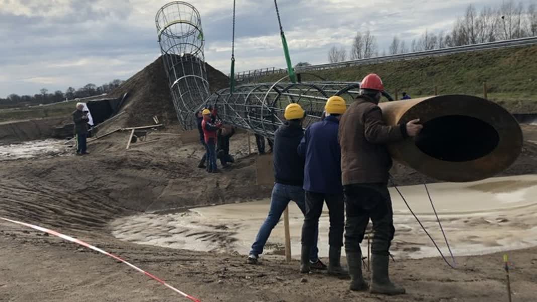 De secretaris van de midwinterhoorngroep in Eibergen is tevreden met het resultaat en trots op de samenwerking binnen en met de gemeente Berkelland. De midwinterhoorngroepen uit Eibergen, Neede, Geesteren, Beltrum en Ruurlo hebben de handen ineen geslagen voor de realisatie van de metalen megamidwinterhoorn. "Het verband tussen de vijf groepen wordt weergegeven door de vijf sloten en de vijf knotwilgen", zegt Gerrit Keuper van de midwinterhoorngroep uit Eibergen.De geplante boompjes krijgen tussen de zeven en tien jaar de tijd om krom te groeien, zodat ze geschikt zijn om er midwinterhoorns van te maken. Keuper: "Dan zagen we zó af dat elk stammetje aan de zijkanten uitloopt, want dan krijg je voor elk stammetje er twee voor terug."