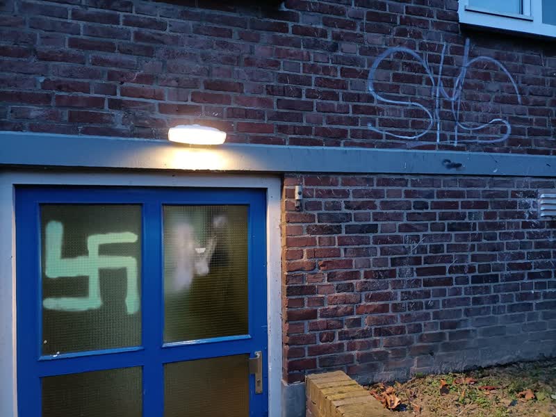 De vernielingen zijn gepleegd bij drie van de zes flats aan de Leerinkstraat. Op twee deuren naar de kelderboxen onder één flatgebouw, zijn twee hakenrkuizen gespoten. Ook hebben de onbekende daders met graffiti op muren, op een ondergrondse container en in een trappenhuis gespoten.