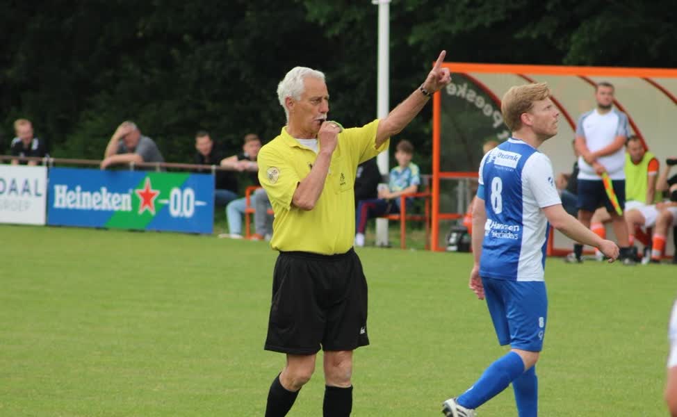 “Het was ook nog eens een echt familie-uitje. Ik had gevraagd of ik mijn laatste wedstrijd in de buurt mocht fluiten. Bij ’t Peeske in Beek is het extra speciaal omdat mijn kleinzoon daar speelt en mijn zoon grensrechter is”, zegt Kok. Aan de boarding kwam veel familie kijken naar het laatste kunstje op het voetbalveld van (o)pa. Een makkelijk potje was het voor de ervaren scheidsrechter echter niet. “De wedstrijd eindigde in 3-4, het was wel een hectische pot. Ik heb maar liefst zeven gele kaarten uit moeten delen.”