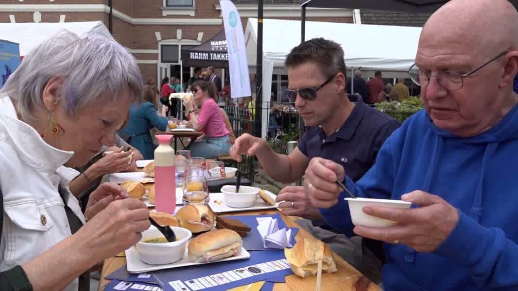 Op het Prins Clausplein in Dinxperlo genoten zowel Nederlanders als Duitsers vrijdag van een Vrijheidsmaaltijd. De maaltijd werd georganiseerd door betrokken inwoners die de nauwe burenband met het Duitse Suderwick willen versterken. “We hebben eerder op deze plek een maaltijd georganiseerd, maar het is voor de eerste keer dat we het doen met ‘Vrijheid’ als thema”, vertelt voorzitter Marijke Verschooren. Ongeveer 250 inwoners uit zowel Dinxperlo, Aalten, Suderwick en Bocholt genieten van belegde broodjes en een echte Vrijheidssoep. “Die soep wordt elk jaar gemaakt door het 4 en 5 Mei comité en dit jaar is het een mais-kokossoep”, aldus Verschooren.