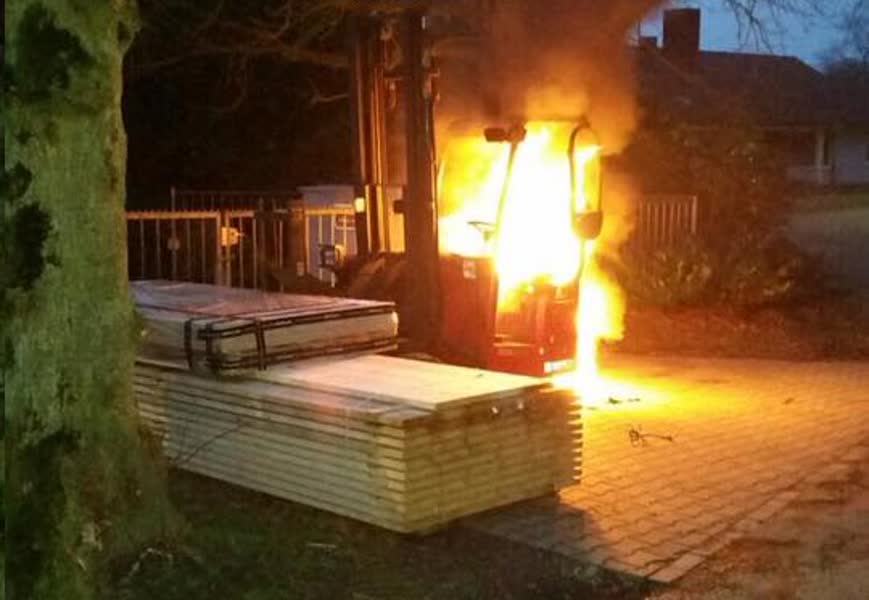 Heftruck vliegt in brand op Staring College