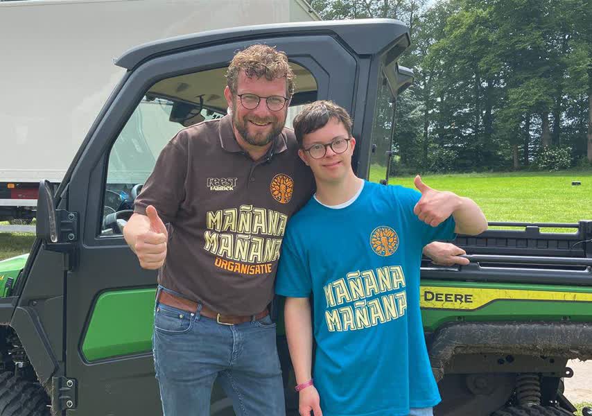 Tijdens de eerste dag van Mañana Mañana in Laren worden de werknemers en vrijwilligers geholpen door bewoners van De Wondere Wereld uit Vorden. De jongeren met een beperking helpen met alle werkzaamheden op het festival.