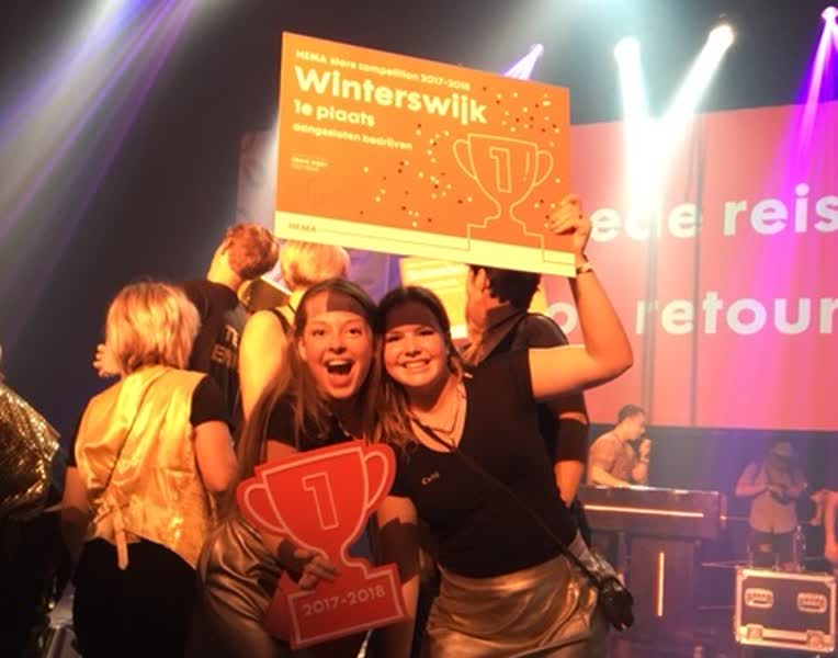 De HEMA wil de titel gaan vieren met de klanten, maar vertelt nog niet hoe ze dat gaan doen. “Hou deze pagina in de gaten. De franchise filialen van het warenhuis in Zwijndrecht en Huissen werden tweede en derde in de competitie.