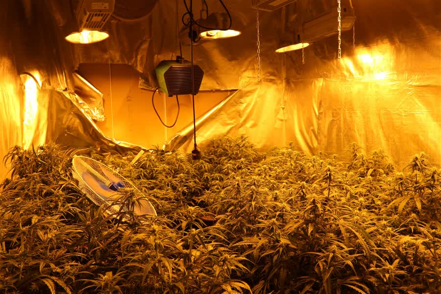 "De hele woning staat vol met hennep", aldus agent Rob Berendsen. "Drie slaapkamer zijn ingericht als hennepkwekerij en ook de zolder. Hij was in werking, de lampen brandden nog." De politie trof in de woning een forse hoeveelheid planten aan. "We hebben een schatting gemaakt dat hier ongeveer vijf- á zeshonderd planten staan. Dat is een grote kwekerij. Zeker omdat het gaat om veel ruimtes. Het aantal planten is eigenlijk aan de lage kant omdat ze in grote potten stonden en een ruime omgeving hadden om te groeien."