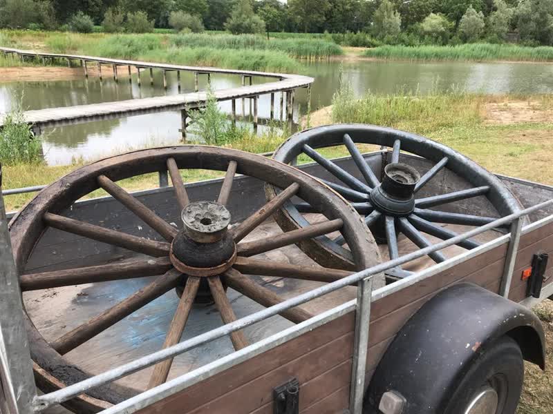 "Het is een unieke mogelijkheid om mee te doen met de optocht", aldus Gerhard Duitshof, een van de wagenbouwers. Na dertig jaar en ter ere van het jubileum van de optocht, wilden de vrijwilligers het Hofshuus weer laten zien in de optocht. "De bedoeling was dat vrijwilligers een oude boerenwagen op zouden knappen", vertelt Duitshof. "De wielen hadden we in de vijver gelegd om te zorgen dat het hout uit zou zetten." Vier wielen van de oude boerenwagen verdwenen in de vijver, maar vervolgens kwamen er maar drie stuks uit. Een zoekactie met een waar team aan duikers werd opgezet, maar dat bleek niet nodig. Het vermiste rijwiel werd enkele meters van de kant gevonden. "We hebben sterk het vermoeden dat we in een complot zijn terecht gekomen", aldus vrijwilliger Han Veerbeek.