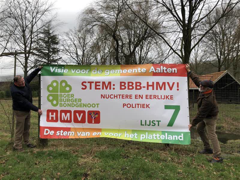 De partij ging het afgelopen jaar een lijstverbinding aan met de BoerBurgerBeweging van Caroline van der Plas. Daarmee is HMV-BBB nu de derde grootste partij in Aalten. Grootste partij blijf het CDA dat groeit met één zetel naar zeven zetels. De andere partijen, behalve de Christenunie, verliezen in Aalten. Zo daalde Gemeentebelangen van vijf naar vier zetels, VVD en de Progressieve Partij Aalten van drie naar twee zetels en D66 van twee naar één zetel. Met de nieuwe zetelverdeling heeft de huidige coalitie van CDA, VVD en Progressieve Partij nog steeds een meerderheid.