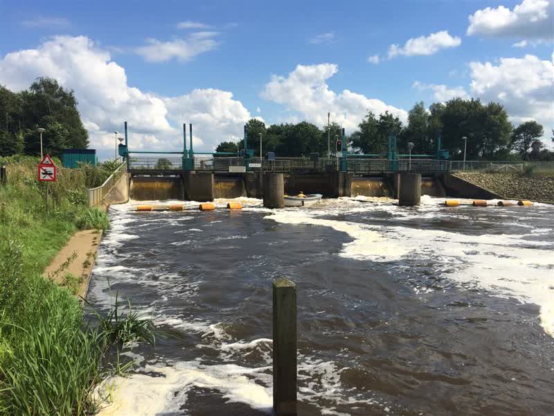 Volgens het Waterschap is er geen bediening mogelijk wegens het hoge water in de rivier. De sluis is vaker bij hoge waterstanden gestremd voor schepen, zoals na de hevige regenval in juni 2016.