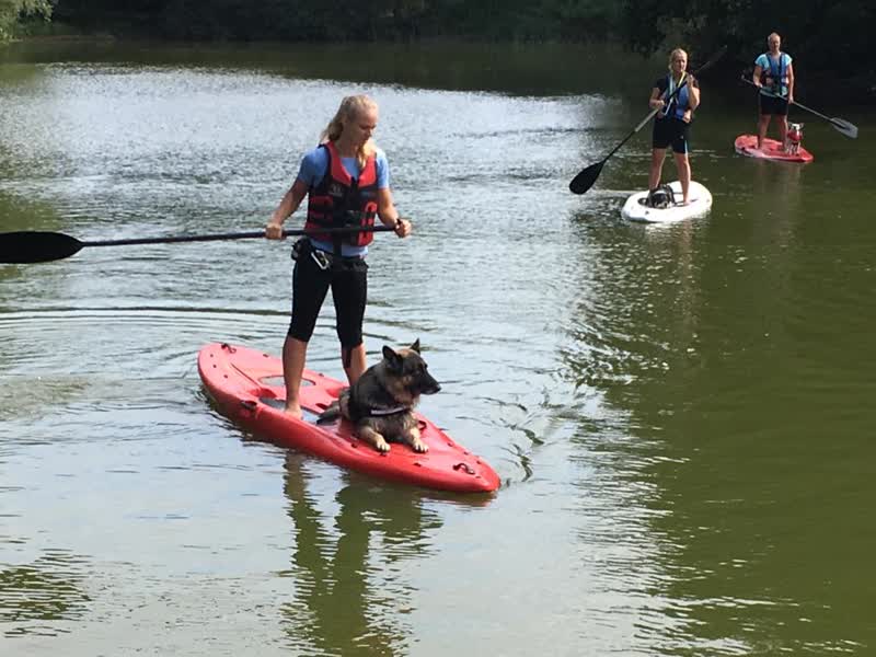 De hond van Finn had iets meer watervrees. “Ik heb afgewisseld met een andere hond, want de mijne vond het wel een beetje eng”, aldus de jonge deelnemer. Jolink heeft nog wel tips voor beginners. “We proberen de honden te leren dat ze tussen je benen gaat zitten, want daar zit het evenwichtspunt”, aldus de initiatiefneemster. “De honden die al enige basiscommando’s hebben geleerd, lukt dat wel ja.”