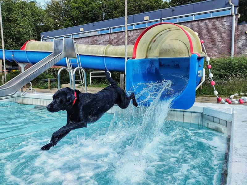 Het zwemseizoen is in Hoog-Keppel onder een stralend zonnetje afgesloten met het traditionele hondenzwemmen. Tientallen viervoeters gingen met hun baasje kopje onder in het Hessenbad.