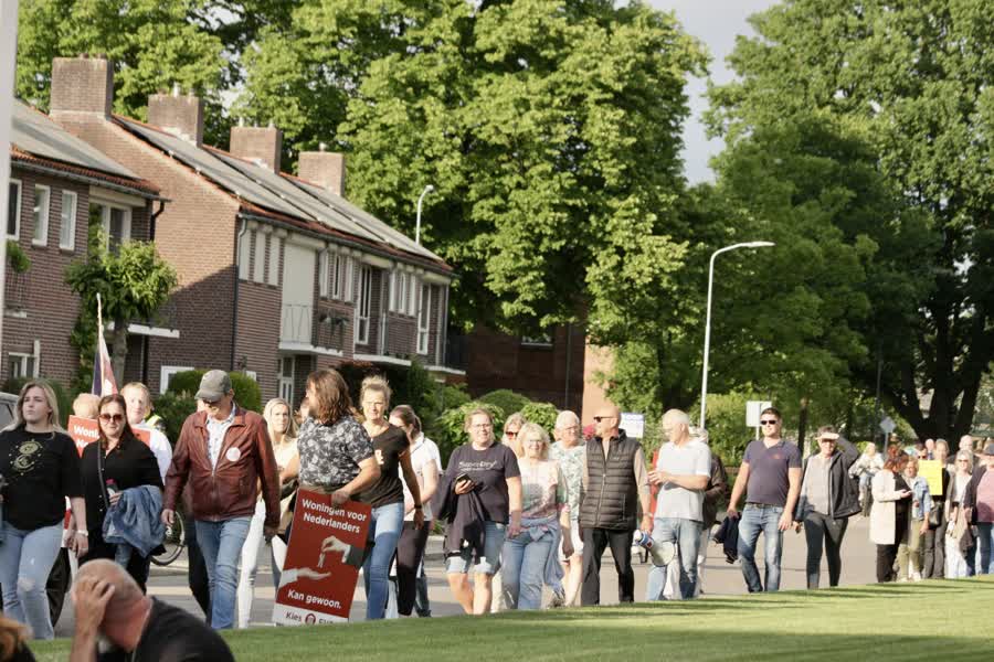 Op de locatie van het beoogde azc hangen Nederlandse vlaggen ondersteboven tussen protestborden. Ook op het plein bij de kerk lieten demonstranten hun mening horen. Bordjes met teksten als ‘asielstop’ en ‘woningen voor Nederlanders’ waren volop te zien. Sommige mensen hadden proteststickers op hun kleding geplakt.