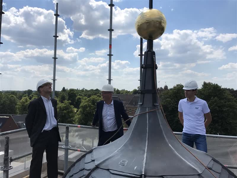 “Dit is het sluitstuk van de hele restauratie van het buitenwerk”, vertelt wethouder Martin Som. “Langzaamaan gaat men de steigers afbreken en naar beneden toe de boel verder afwerken. Er zal binnen nog wel wat moeten gebeuren, maar ik denk dat dit echt een historisch moment is.” De