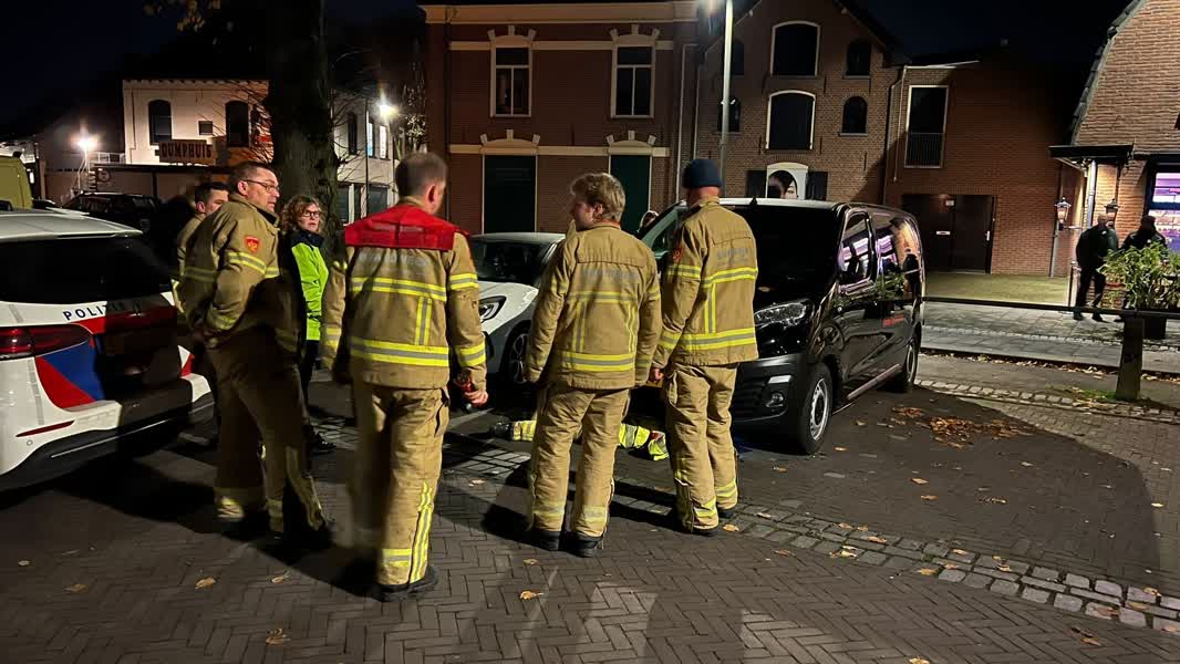 Hulpdiensten bevrijden kitten uit motorblok bedrijfsbus