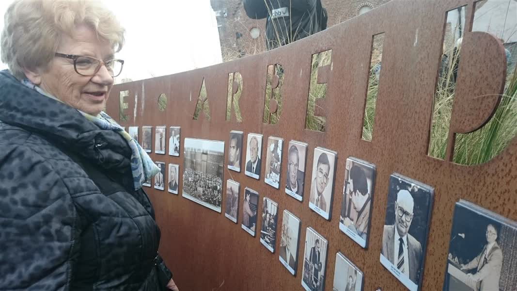 "Belangrijk is dat de arbeiders een gezicht krijgen", vindt Ben Terwiel van stichting Monument voor de Arbeider. Namens de stichting werd eerder de grote fabriekspijp vanuit Ede naar Ulft gehaald. Met de plaatsing van de tientallen foto’s, aangeleverd door oud-werknemers en nabestaanden, is daar een vervolg aan gegeven. "Ik vind het heel mooi", vertelt bezoekster Gerda Gerritsen terwijl ze naar een foto van haar inmiddels overleden vader wijst. "Hij is altijd met plezier naar de DRU gegaan. Ik denk dat als hij van boven kijkt, dat hij dit heel mooi vindt."
