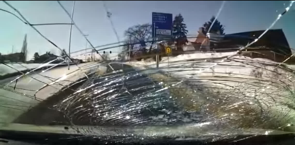 De bestuurder van een busje kreeg donderdagmiddag bij Doetinchem de schrik van zijn leven. Een vanaf een viaduct gekomen ijsbal vernielde tijdens het rijden de voorruit van zijn voertuig.