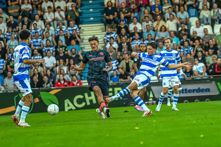 Na het huldigen van trainer Jan Vreman, die veertig jaar in dienst is van De Graafschap, begon de tweede thuiswedstrijd van het seizoen. De eerste paar minuten waren de Doetinchemmers de bovenliggende partij, maar al snel vervaagde dat. Ook raakte middenvelder Stan Wevers in de eerste tien minuten geblesseerd en moest worden vervangen door Lion Kaak.
