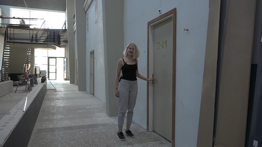 Toen ze hoorde over het appartementencomplex met dertig jongerenwoningen was ze verkocht. "Je hoeft echt niet hele dagen bij elkaar over de vloer te komen, maar ik kom uit een studio waar je veel aanspraak hebt en soms samen eet. Ik vind het fijn dat je hier straks ook bijvoorbeeld even bij iemand op de deur kan kloppen als er iets is." De huurwoningen in de Rijks Hoogere Burgerschool, zoals het pand vroeger heette, zijn bedoeld voor jongeren tussen de 22 en 35 jaar. Vrijwel alle nieuwe bewoners hebben er ooit zelf in de schoolbanken gezeten, ook Myrthe: "Hier stond eerder het bureau van mijn wiskundedocent en ik zat altijd hier bij het raam."