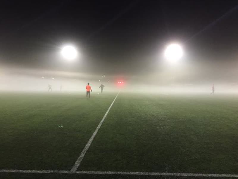 Scheidsrechter Dieperink staakte het duel tijdelijk na 64 minuten gespeeld te hebben. Op dat moment stonden de Superboeren 1-0 voor dankzij een doelpunt van Vincent Vermeij. Na 10 minuten werd de wedstrijd definitief gestaakt.