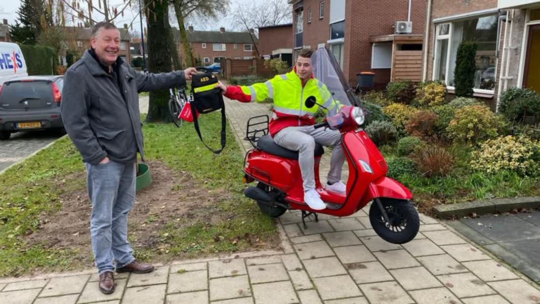 De jonge levensredder Jesse van de Gevel uit Silvolde heeft donderdag zijn eigen AED gekregen. Met zijn speciaal omgebouwde scooter rukt de 18-jarige regelmatig uit om levens te redden.