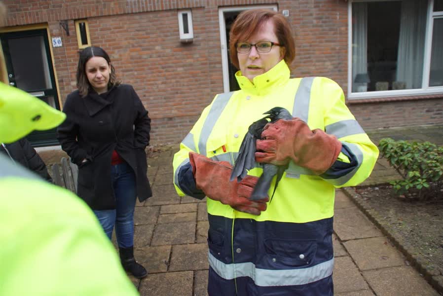 De kauw is uiteindelijk met behulp van een hoogwerker uit de schoorsteen gehaald. Het dier is daarna overhandigd aan het ambulancepersoneel. De Dierenambulance heeft de vogel meegenomen naar de opvang in Westendorp voor verdere verzorging van enkele wondjes.