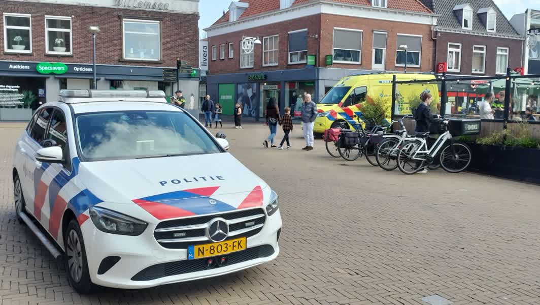 Een mountainbiker reed onder de luifel van stadscafé Simons door, waar hij op een klein kind botste. Volgens ooggetuigen ging dit met aardige snelheid. Het kindje is hierbij gewond geraakt en in de ambulance nagekeken maar hoefde niet mee naar het ziekenhuis. De politie sprak met de veroorzaker en enkele getuigen op het terras.