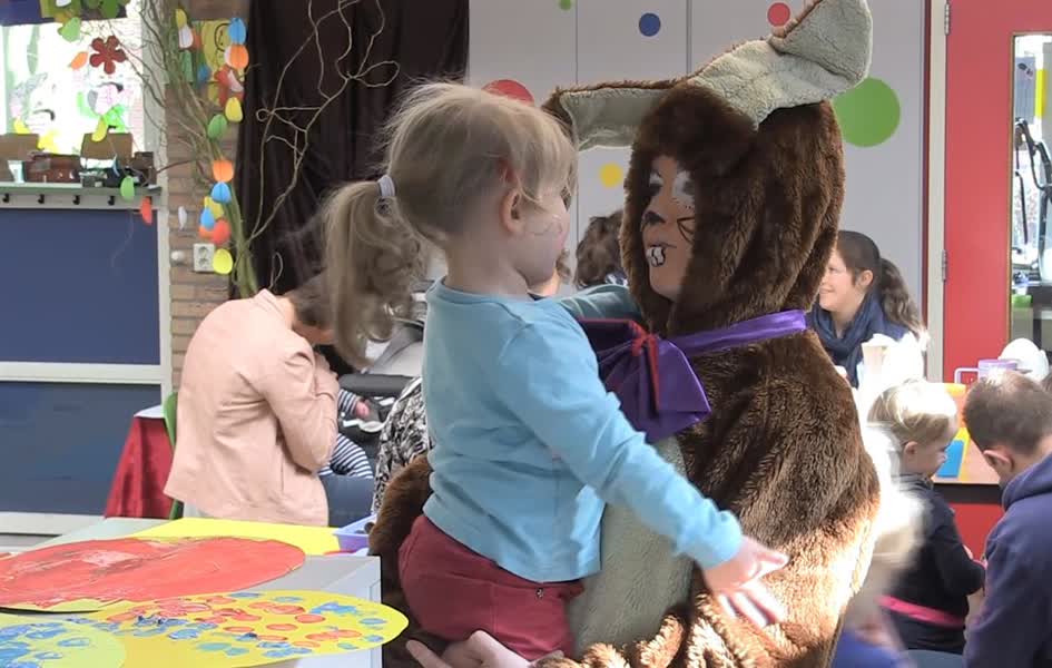 “De kinderen willen niet naar binnen, maar achter de paashaas aan”, verteld directeur Dicky ter Beek. “Ze gaan straks allemaal de eieren zoeken, mogen op de foto met de paashaas en ze gaan natuurlijk de paaseieren schilderen.”