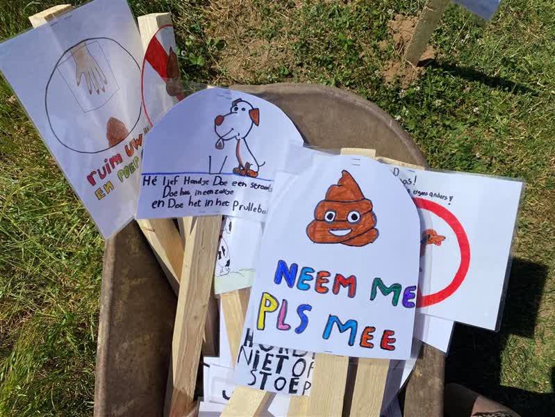 Ondanks de enorme overlast, worden er geen extra prullenbakken of dispensers geplaatst. "Wij zijn ook met de gemeente in contact gekomen om wat meer prullenbakken of dispensers te plaatsen", laat Carmen Molenaar van Gewoon Groen weten. "Maar de gemeente vond dat eigenlijk niet nodig, dus dan ga je naar andere middelen zoeken. Hoe leuk is het dan om de school hier in de buurt daar zo actief bij te betrekken." De kinderen en de buurtbewoners hopen dat de bordjes ervoor zorgen dat de hondeneigenaren de hondenpoep nu wel gaan opruimen.