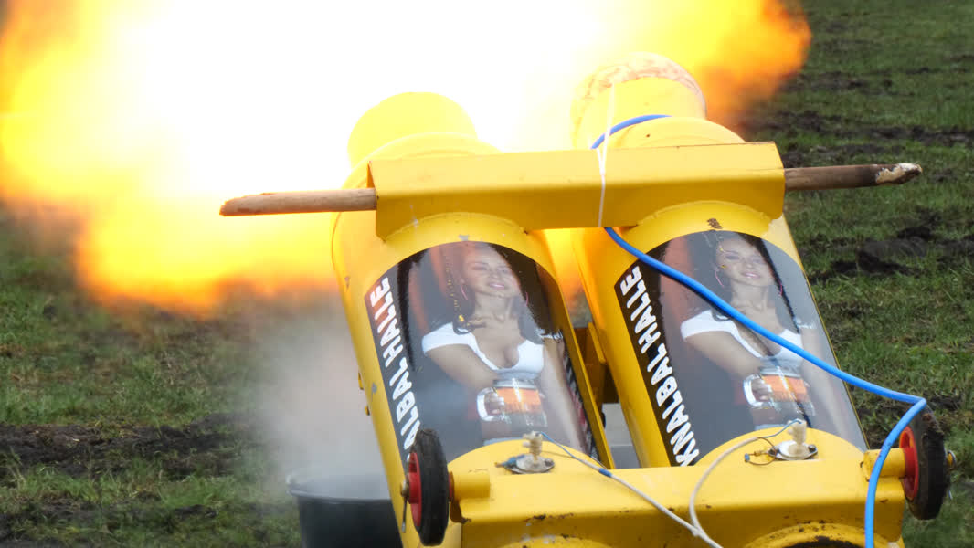 Berendsen kan hierdoor het kanon op afstand af laten gaan. “Opzich veilig, netjes en mooi.” Volgens de carbidschieter is de combinatie van techniek en gezelligheid de hoofdreden waarom carbid nog altijd populair is.