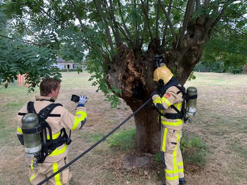 De brandweer van Doetinchem kwam ter plaatse om de boom te blussen.