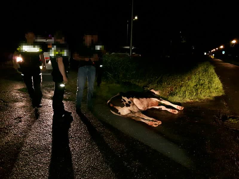 Uiteindelijk moest er een dierenarts aan te pas komen om de pink te verdoven. Inmiddels was de boer gewaarschuwd. Hij heeft het dier opgehaald en weer in het weiland bij de andere koeien gezet.