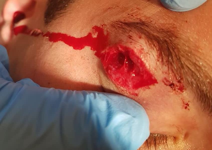 “Ik bokste tweeënhalve ronde echt een hele goede wedstrijd”, vertelt Koemans. “En toch wilde ik in ronde drie nog tempo erbij doen om zeker het verschil te maken. Ik stapte te diep in en mijn tegenstander stapte ook in en toen kwamen we met de hoofden tegen elkaar en had ik een grote scheur in mijn oog. Dus toen was het einde partij.” Hij werd nog wel als winnaar van de wedstrijd uitgeroepen en plaatste zich dus voor de finale. Pas bij de dokter werd de ernst van de blessure duidelijk. “Het was een hele flinke wond. Ook heel diep en dat maakt het vooral erg. Als het alleen een klein sneetje is, kunnen ze hem dicht plakken en dan kan ik gewoon met hechtpleisters door boksen. Maar omdat het zo diep is, moesten ze ook onderhuids hechten.” In totaal kreeg Koemans zeven hechtingen in zijn ooglid, drie onderhuids en vier zichtbaar.