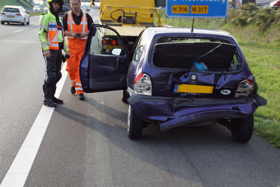 De inzittenden van de twee auto’s werden door de hulpdiensten gecontroleerd, maar er hoefde niemand mee naar het ziekenhuis. Tot de voertuigen weggesleept waren heeft de politie het verkeer over één rijbaan geleid.