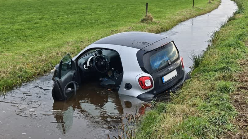 Duitse automobilist rijdt door weiland en belandt in sloot Gendringen
