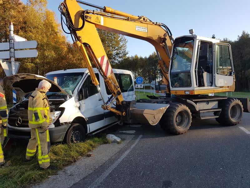 De kraan reed rond 14.45 uur ter hoogte over de Hambroekweg in de richting van Neede toen het misging. Hij wilde de Batendijk oversteken naar het andere gedeelte van de paralelweg, maar zag daarbij een taxibusje die van rechts kwam over het hoofd met de aanrijding tot gevolg. De bestuurder van de taxibus is met onbekend letsel afgevoerd naar het ziekenhuis.