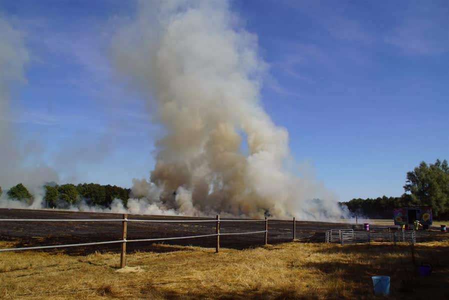 De brand werd omstreeks 16.30 uur ontdekt aan de Vossenbult en werd vanwege de weersituatie snel opgeschaald naar een grote brand. Met de huidige temperaturen en langdurige droogte is een klein vonkje al genoeg om vuur te laten ontstaan. Volgens de Veiligheidsregio is het weiland 150 bij 50 meter groot.