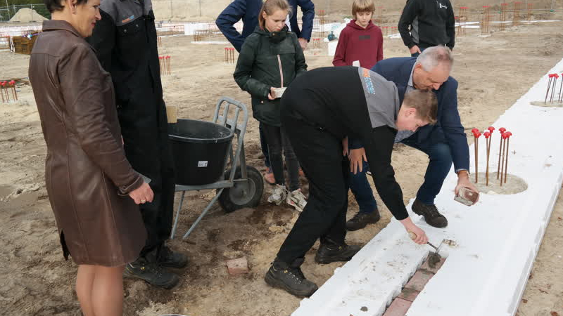 Brugklassers gaven dinsdagmiddag bakstenen aan elkaar door om de start van de bouw van het nieuwe St...
