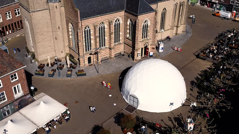 Wie de komende week door de binnenstad van Doetinchem loopt, stuit op een grote witte bol op het Sim...