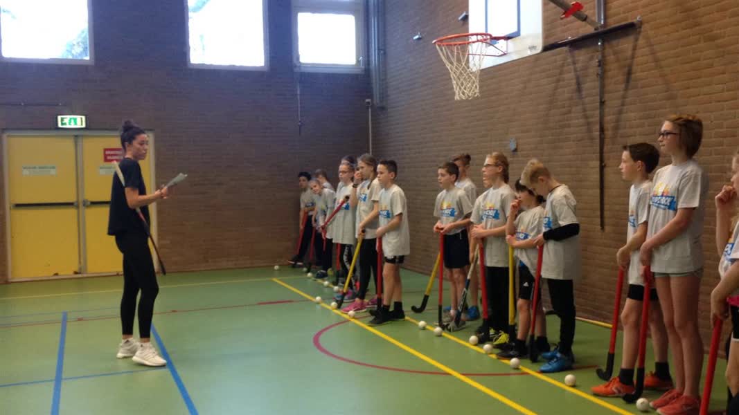 De les begon met een beginnerslesje in hockey. “We hebben even gedreven. Even geleerd hoe je überhaupt een stick moet vasthouden.” Maar ook de hersens moesten gebruikt worden tijdens de sportieve les. “We hebben een quiz gedaan met stellingen. Uiteindelijk was er een jongen die heeft gewonnen”, aldus Van As. Ook voor de leraren was het een bijzonder bezoek. “Ik kijk toe en ik vind het heel leuk dat de kinderen er zo van genieten”, zegt schoolleider Wineke Spaan.