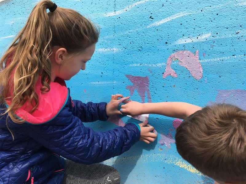 Leerlingen verven aquarium op fietstunnel