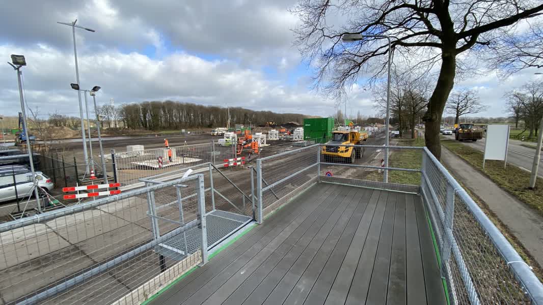 Aannemer BAM heeft een uitzichtpunt gerealiseerd, zodat voorbijgangers de bouw van de Nettelhorsterbrug in Lochem veilig kunnen bekijken. De gemeente roept inwoners op te voet te komen kijken, omdat er geen parkeergelegenheid is.