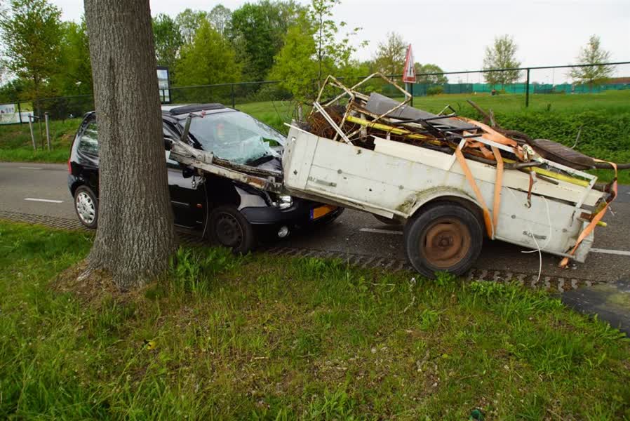 Losgeschoten aanhanger knalt op auto