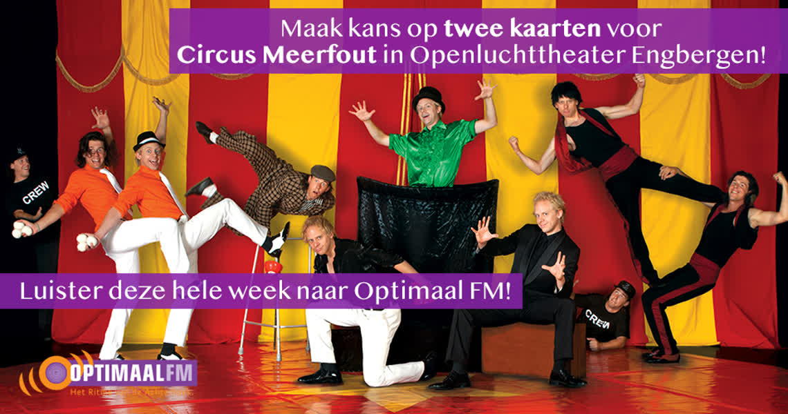 Maak deze week kans op twee kaarten voor Circus Meerfout in Openluchttheater Engbergen!Luister deze hele week naar Optimaal FM en maak kans!