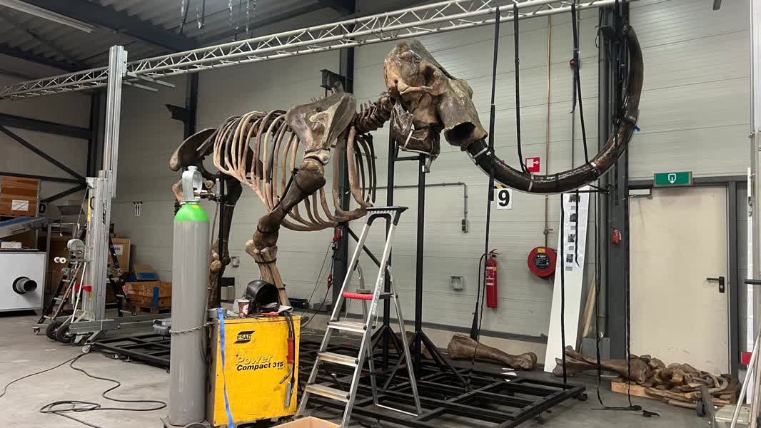 "Hier staat een wolharige mammoet, die komt uit de laatste ijstijd", zegt Bart Schenning. "Dan praten we over een tijdsbestek van 50.000 tot 80.000 jaar geleden. Wie kan nou zeggen dat hij een mammoet in zijn collectie heeft opgenomen." Het mammoetskelet bestaat uit honderden verschillende botten van meerdere mammoeten, toch mist er nog één onderdeel. "Wij hebben alle 270 beenderen bij elkaar, op de linker rib na. Daar ben ik al jaren naar opzoek, maar die komt ook nog wel een keer boven water", zegt Schenning. "Wij hebben er in principe niks bij gemaakt, alle 270 beenderen zijn authentiek. Wij hebben alleen her en der waar een stukje ontbrak wat gerestaureerd."