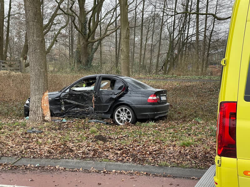 Een bestuurder is vrijdagmiddag met zijn auto tegen een boom gereden in Groenlo. De automobilist is met onbekend letsel naar het ziekenhuis afgevoerd.