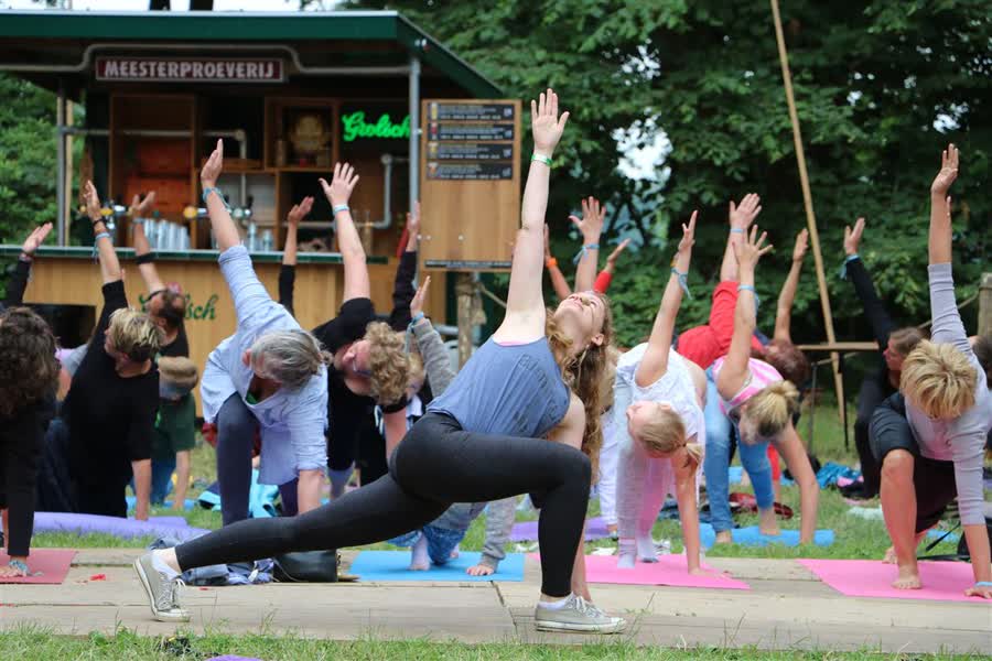 ''Een lekkere start van de dag'', noemt één van de sportieve deelneemsters de les. Docente Petra Boomsma geeft de les, die geschikt is voor jong en oud, sinds enkele jaren op iedere festivalochtend. ''Het was een hele leuke les, er was een goede sfeer'', blikt Boomsma terug. ''Het is wel anders vanwege de locatie en de grote groep mensen, maar ik doe hetzelfde als wat ik thuis ook doe.''