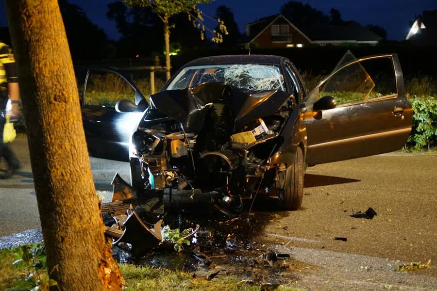 De twee jongemannen reden over de weg toen de bestuurder door onbekende reden de macht over het stuur verloor in een scherpe bocht naar rechts. De auto schoot daardoor rechtdoor tegen een boom. De twee inzittenden zijn nagekeken in de ambulance en zijn beide ongedeerd gebleven.