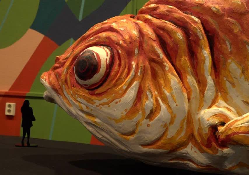 Wij hebben er voor gekozen om een heel klein onschuldig lief diertje, een goudvisje, heel groot op te blazen en te vergroten tot 22 á 23 meter groot”, vertelt ontwerper Glenn ter Haar van corsogroep Hooiland. “Daar zijn we nu inmiddels door corona al twee jaar mee aan het bouwen.” Het is nu nog een statische goudvis, maar tijdens het corso zal de wagen ook echt in actie komen. “Het idee is wel dat hij heel erg gaat bewegen”, zegt Ter Haar. “Sowieso dat blubbende effect wat het mondje gaat doen. Dat is natuurlijk al heel schattig. Die ogen gaan kijken en de vinnen moeten gaan zwieren, zodat het lijkt alsof hij in het water zweeft. Een leuke uitdaging!”