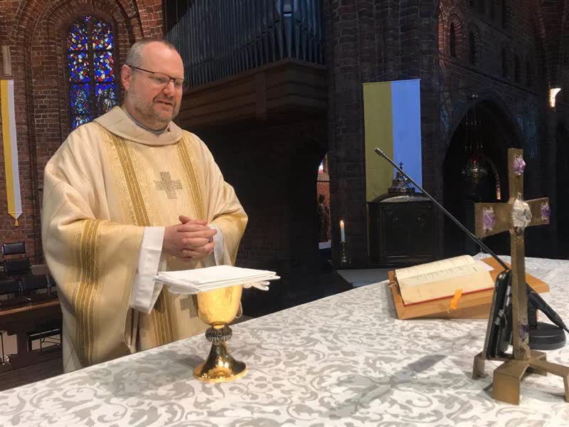 De afgelopen periode gaf de pastoor online kerkdiensten, zie beelden