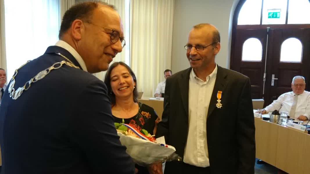"Dan ben je een kersverse wethouder en gaat het toch over iets anders", aldus burgemeester Peter de Baat, die zich voorafgaand aan de raadsvergadering richtte tot Som. "U bent een echte Diemse die graag middenin de samenleving staat en contact zoekt met mensen. Men zegt dat u een tomeloze energie heeft." De burgemeester wees onder meer naar zijn verdiensten voor voetbalvereniging DVC’26 en zijn inzet voor schutterij De Eendracht, alvorens hij het lintje opspeldde.